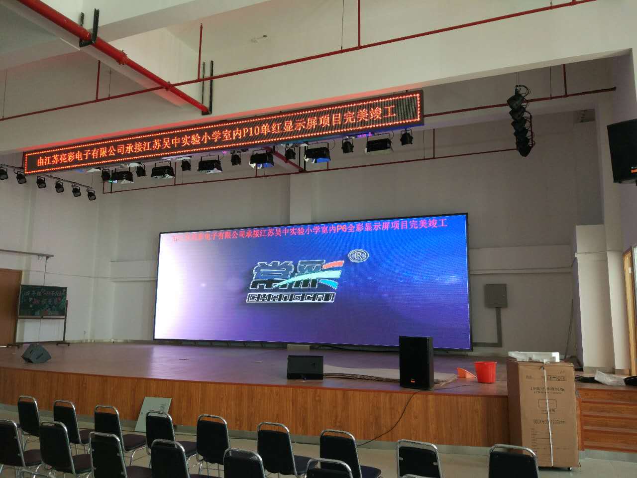 Today, the Jiangsu Liangcai electronic construction of Wuzhong Experimental Primary School indoor and outdoor full color P6 display, single red P10 bar screen successfully completed. Wuzhong experimental primary school was founded in 1996, is located in Suzhou City, Wuzhong District east Wu tower, the ancient river transport, is the school modernization of Jiangsu Province, Suzhou City Experimental Primary School education. The school has 25 classes, more than 1000 students, more than 70 teachers. Campus covers an area of more than 29000 square meters, beautiful environment, green, architectural sketches and other features of Jiangnan gardens. The building area of more than 8500 square meters, has a library, laboratories, computer rooms, TV room, chess room, fencing and other special field room, modern educational facilities.
