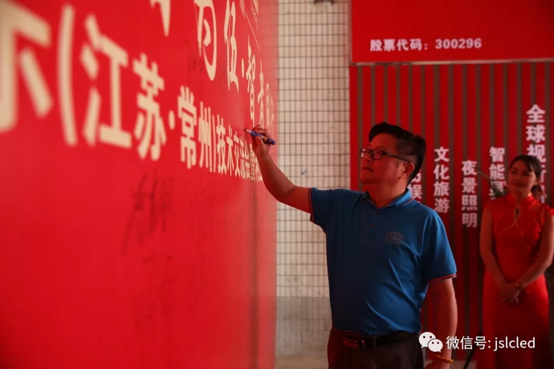 Jiangsu Liangcai electronics co., LTD., general manager of chapter nine yu, Mr DE channel center, vice general manager Mr. Wu, this group (stock code: 603680) chairman of the board YuJinKun and ms Han Hongwei, vice chairman of changzhou federation of industry and commerce on stage together for celebration and opening ceremony.