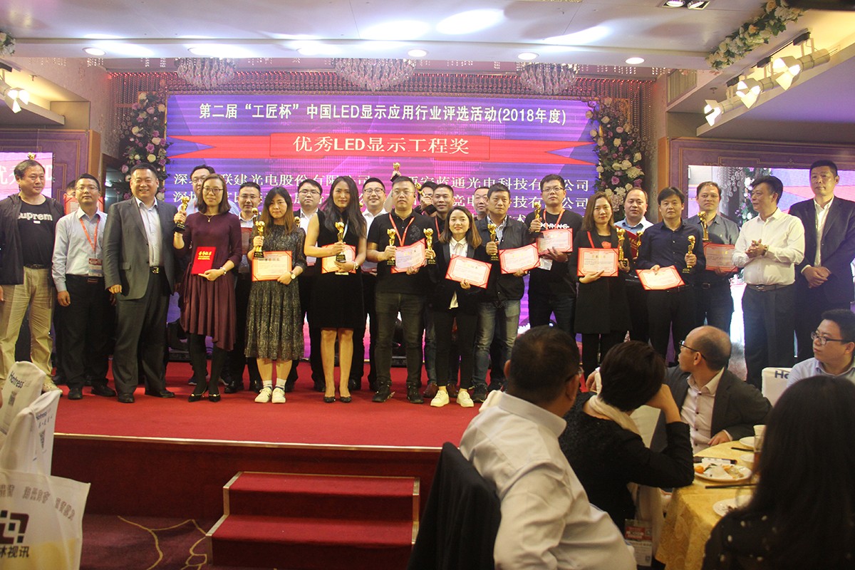 本著“提高LED顯示屏行業(yè)的知名度,推進(jìn)企業(yè)品牌建設(shè),打造一批具有良好質(zhì)量信譽(yù)和超強(qiáng)競(jìng)爭(zhēng)力的企業(yè)品牌及LED優(yōu)質(zhì)顯示工程這一宗旨”,第二屆“工匠杯”中國(guó)LED顯示應(yīng)用行業(yè)評(píng)選活動(dòng)(2018年度),正式啟動(dòng)。19年2月22日,舉辦了2018年中國(guó)LED顯示應(yīng)用“工匠杯”評(píng)選大會(huì)。在此次評(píng)選中,江蘇亮彩喜獲“第二屆中國(guó)LED顯示應(yīng)用'工匠杯'優(yōu)秀LED顯示工程獎(jiǎng)”。