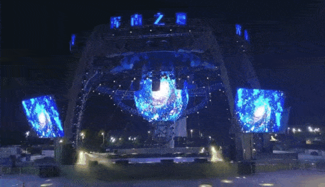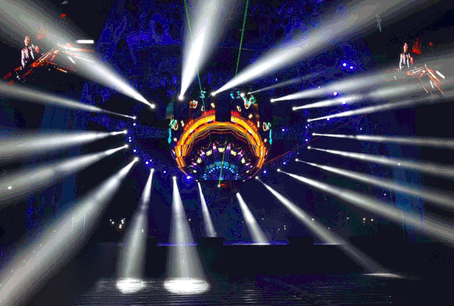 中央懸掛的高清多維球形屏幕,由512塊單體屏幕包裹而成,采用的是金立翔戶外P5間距LED屏,配合頂部的機(jī)械手裝置造型,為演出呈現(xiàn)精彩絕倫的立體特效,帶領(lǐng)觀眾穿梭時(shí)空,打造出既熱烈又炫酷的現(xiàn)場(chǎng)氛圍。